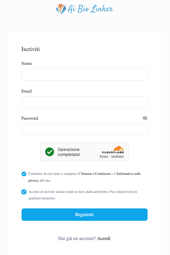 Crea un account AiBioLinker