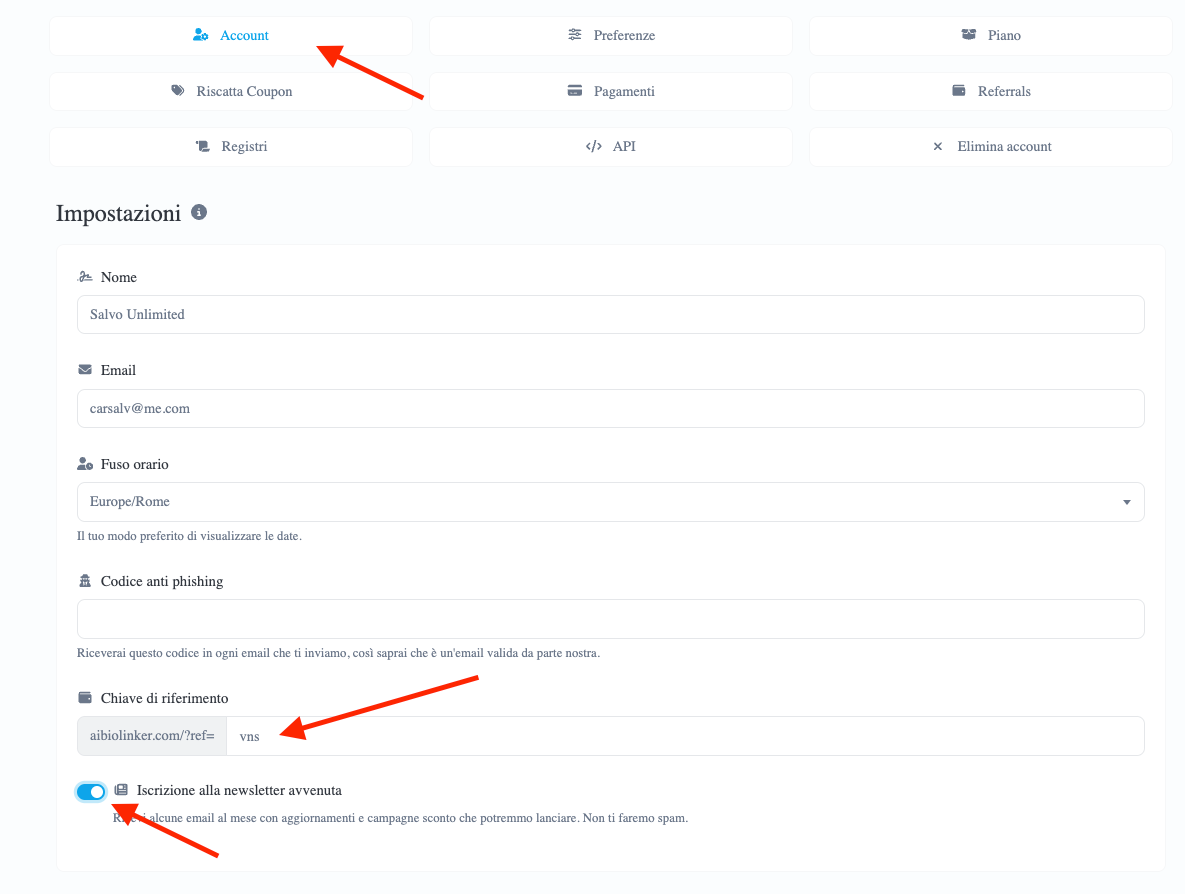 Seguendo questi criteri, il risultato sarà un account ben configurato e pronto per essere utilizzato su AiBioLinker.