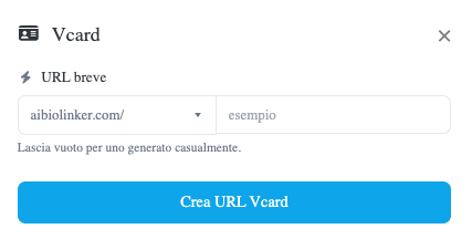 Inserisci il nome che vuoi dare al tuo link vcard nell’apposito campo e poi clicca su Crea URL Vcard