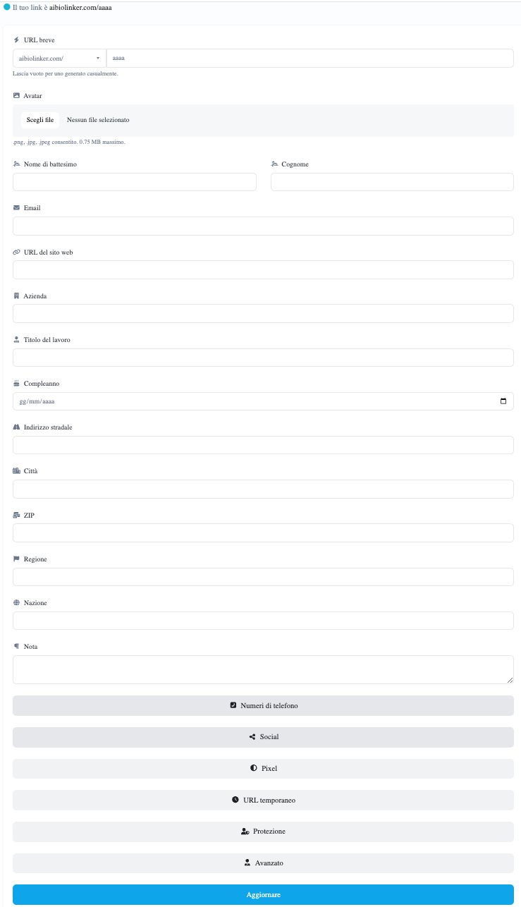 Una volta soddisfatto del risultato, puoi salvare il biglietto da visita sul tuo account AiBioLinker. Questo ti permetterà di apportare modifiche in futuro.