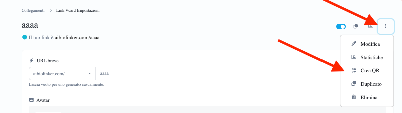 Clicca sui 3 puntini a destra del link creato per accedere al menu e clicca su MODIFICA, inserisci tutti i dati che vuoi.