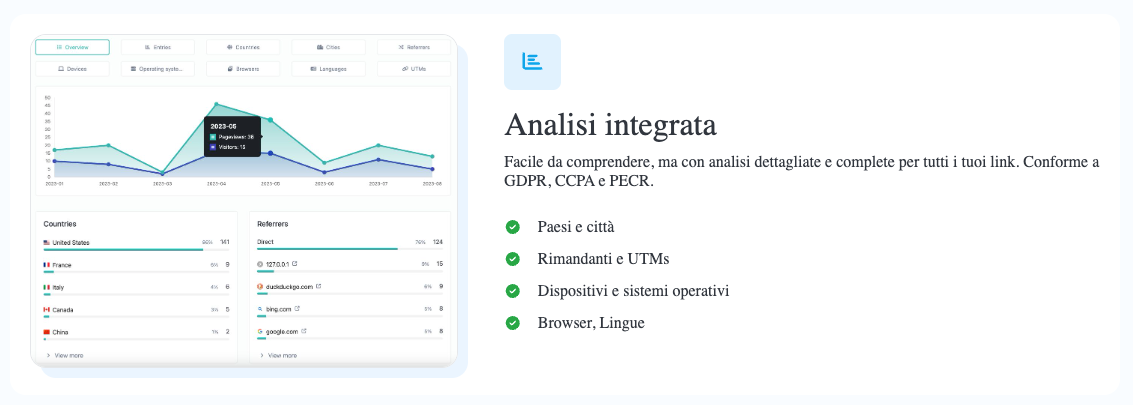 Un’altra funzionalitร importante รจ la possibilitร di monitorare e analizzare le prestazioni della pagina bio. Gli utenti possono visualizzare dati sulle visite, la localitร dei visitatori e il comportamento degli utenti, permettendo una strategia di marketing piรน informata.